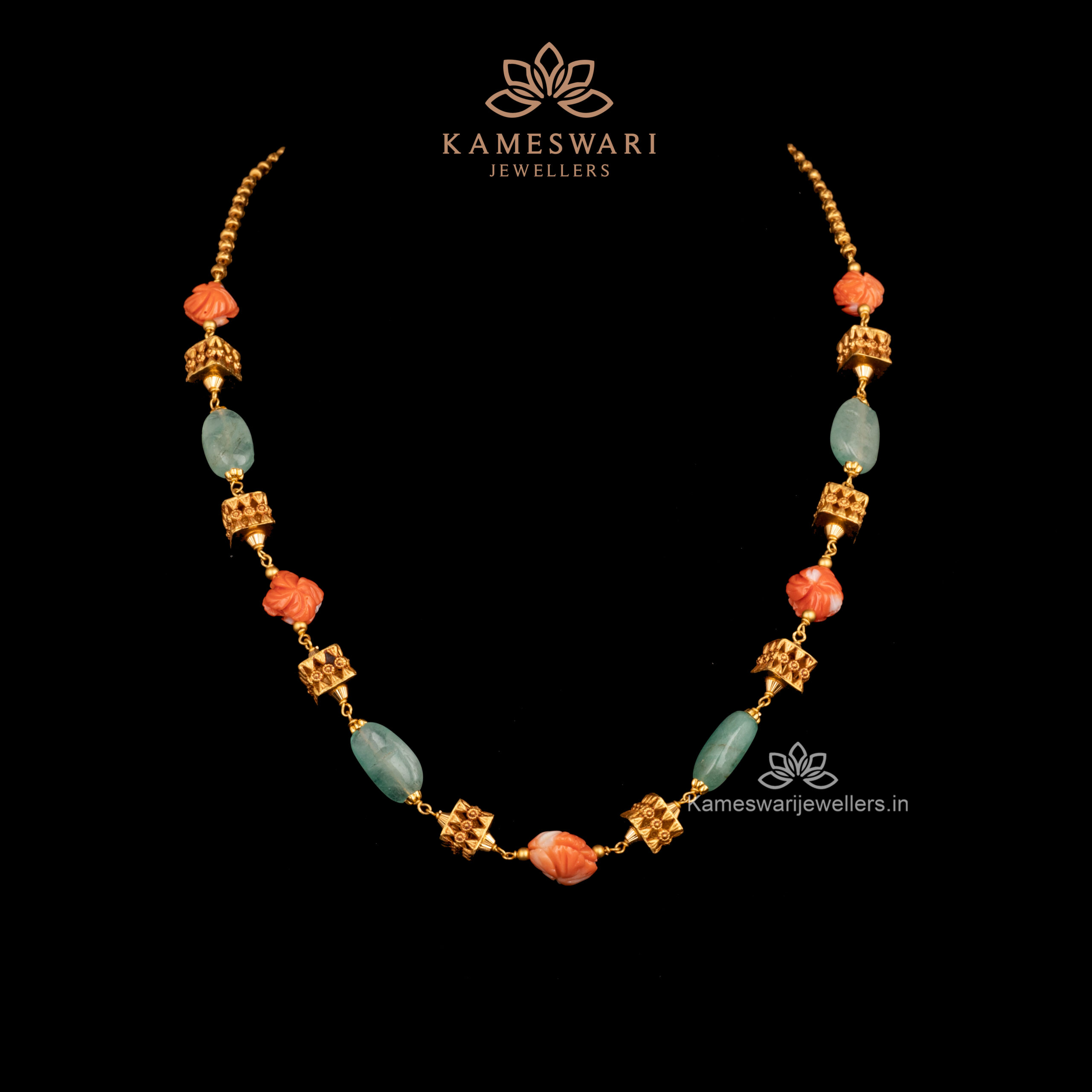 Elegant Beeds and gold Chain | Kameswari Jewellers