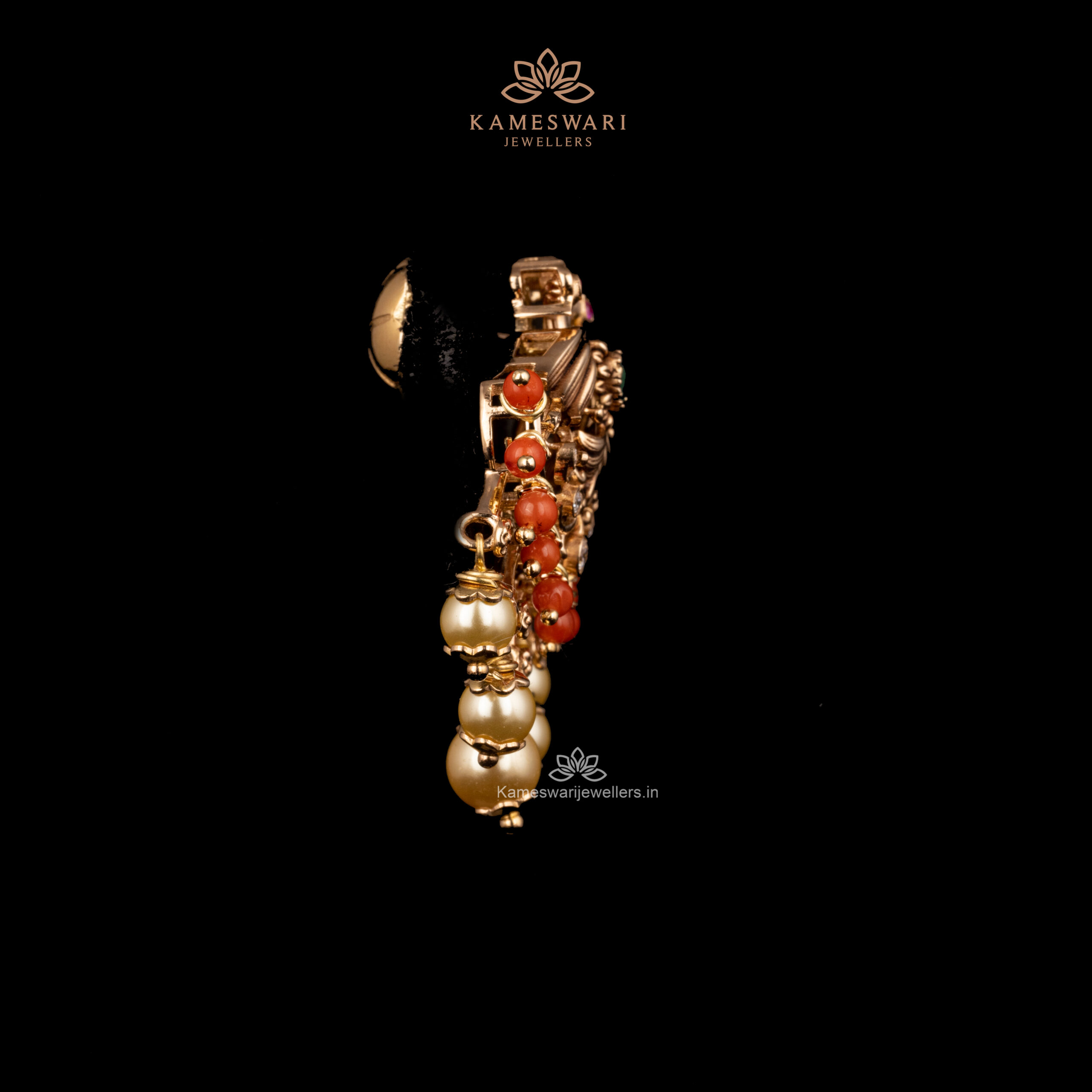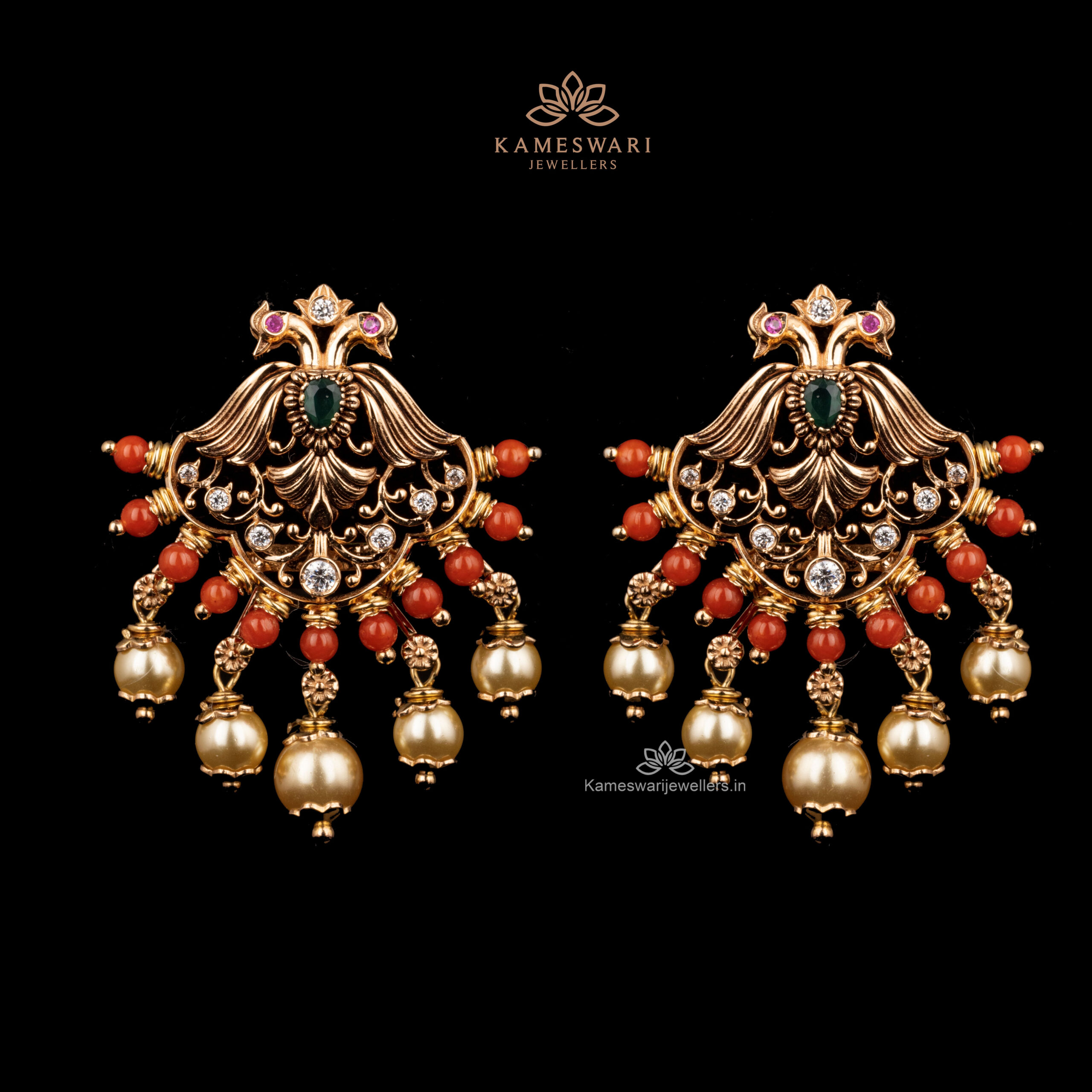 Be the first to review “CZ cluster earrings with intricate design and pearl embellishments | KAMESWARI JEWELLERS |” Cancel reply