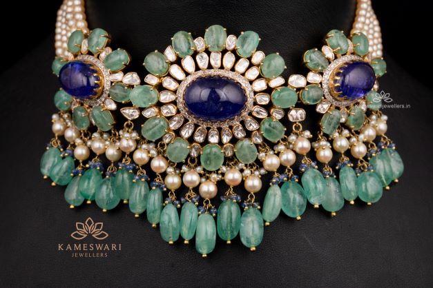 Tanzanite and Polki Necklace Set | Kameswari Jewellers