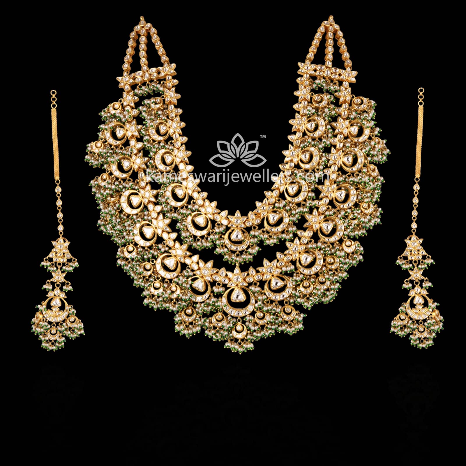 Layered Polki Haram with earrings | Kameswari Jewellers