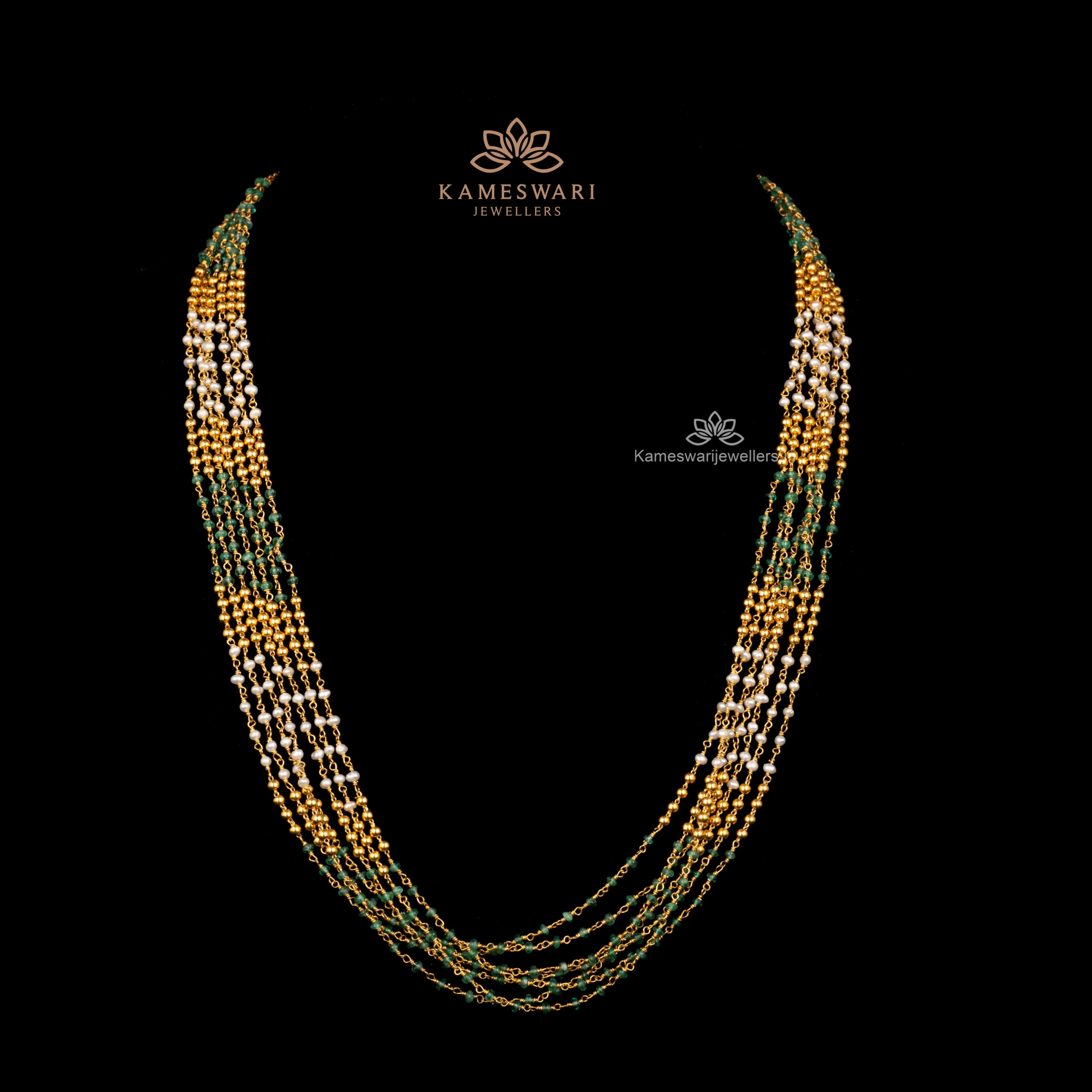 Be the first to review “Multi-Strand Gold Bead Chains with Green Accents” Cancel reply