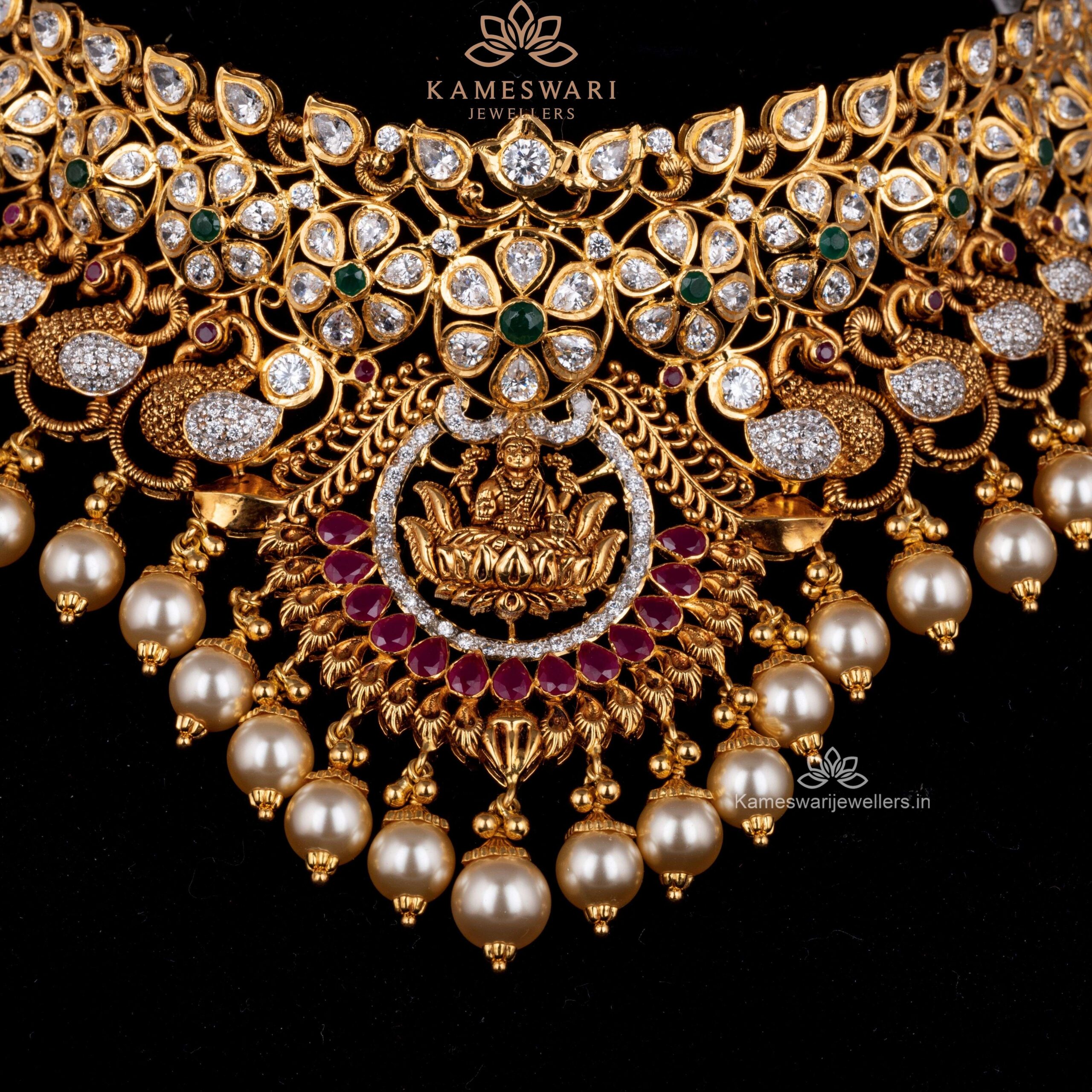 Goddess Laxmi Devi Necklace in Peacock finish