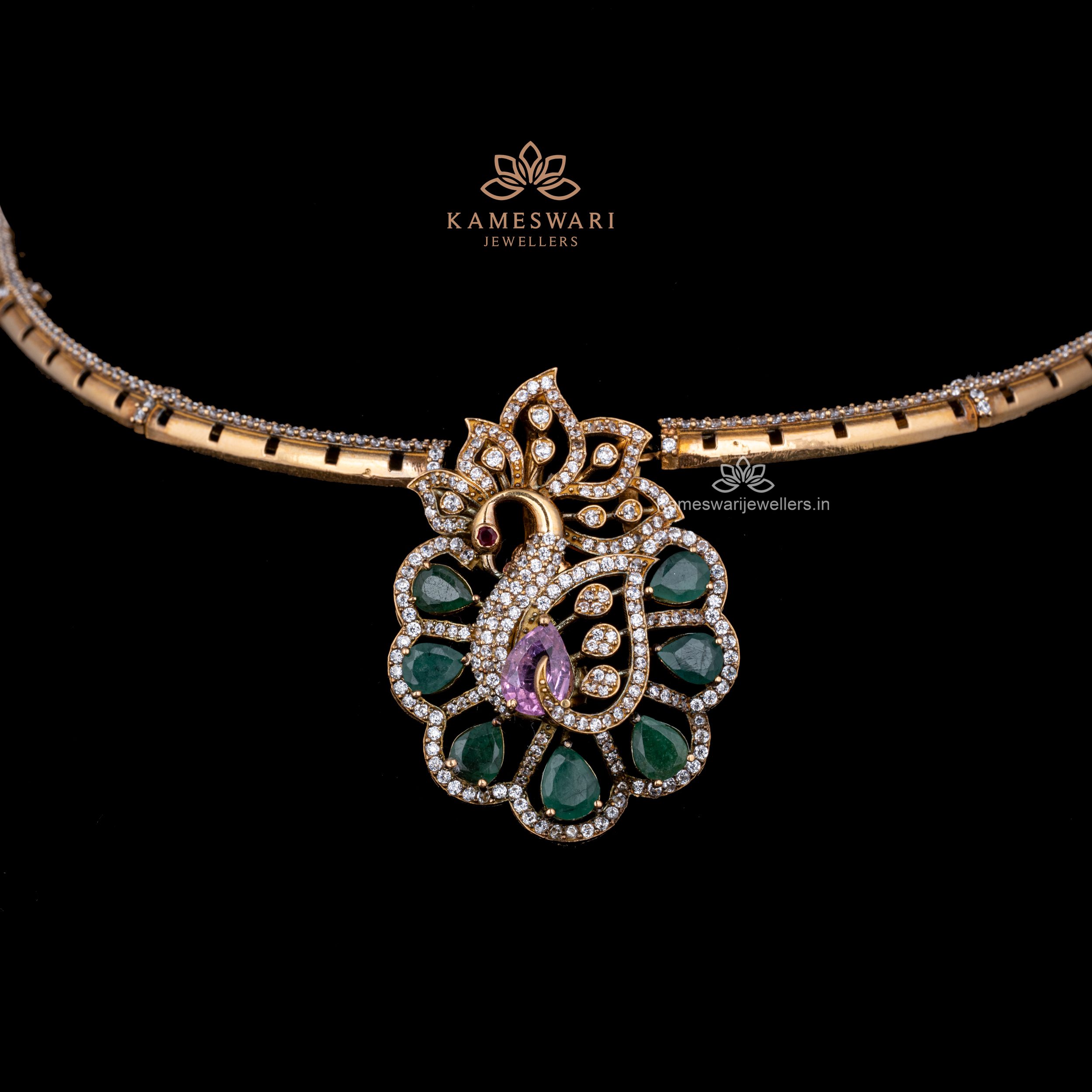 Peacock Motif Gold Necklace – Kameswari Jewellers