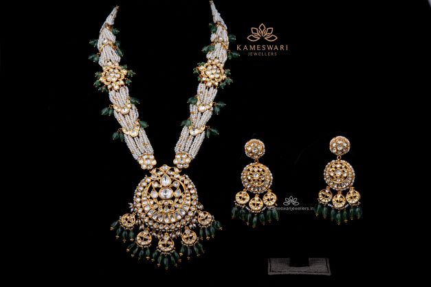 POlki and Beeds Haram with Earrings | Kameswari Jewellers