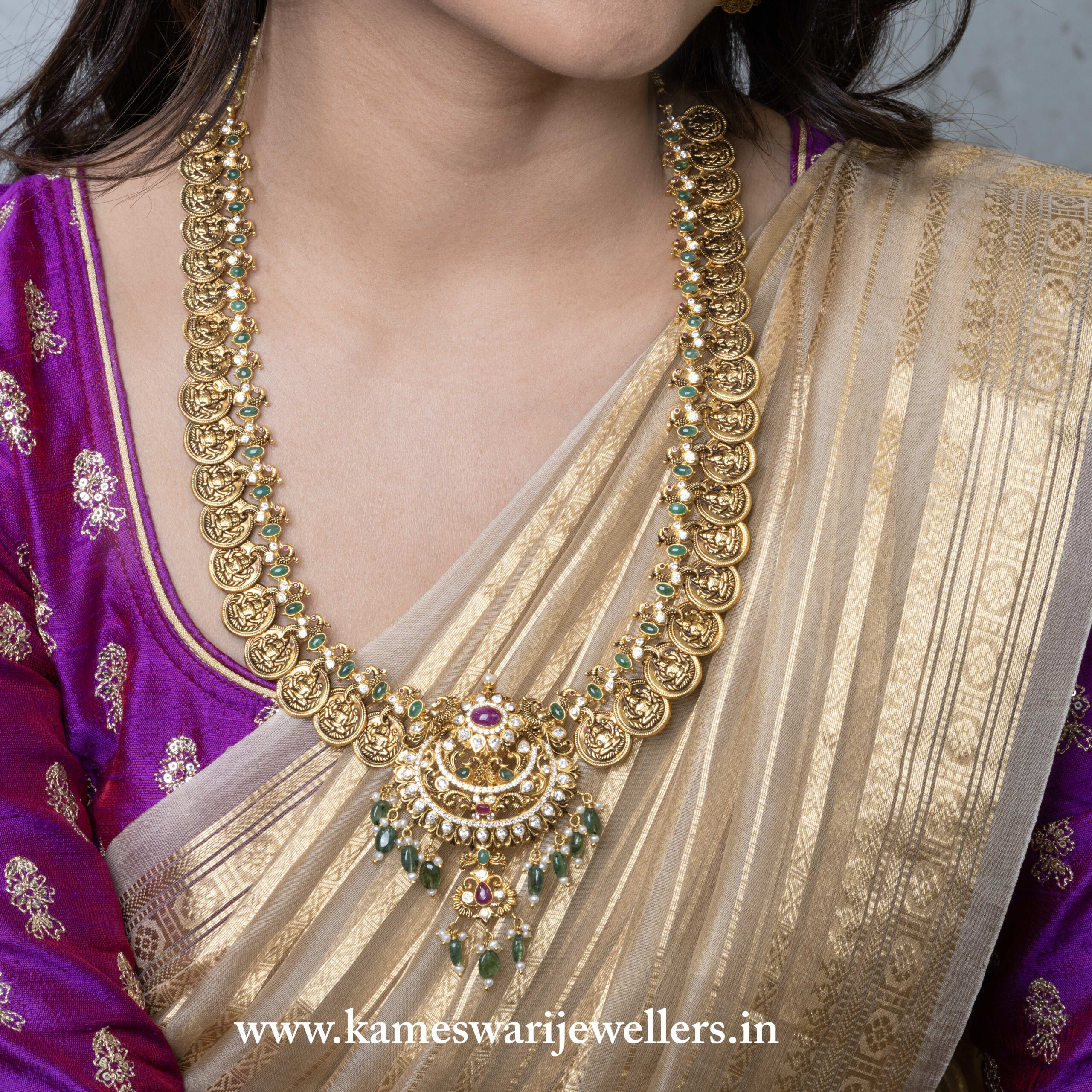 Pachi Kasu Haram with Intricate Pendant and Gemstone Embellishments
